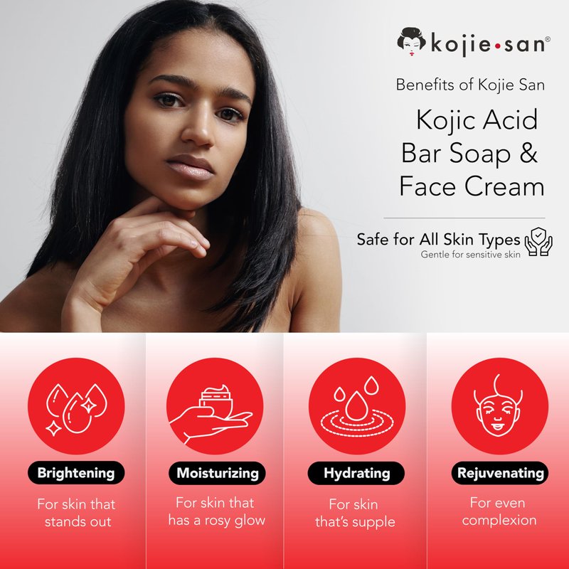 - Reveal The Most Radiant Self: Experience real kojic acid soap that helps reduce melanin production making skin tone brighter and clearer. Kojie San Soap is effective in diminishing dark spots, freckles, and acne, stretch marks, uneven skin tone and other skin tone disorders.