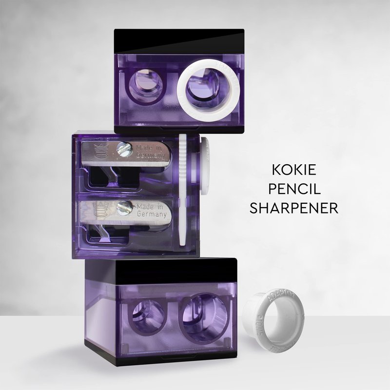 Kokie Makeup Pencil Sharpener for Lip, Eyebrow, and Eyeliner Pencil, Made in German Stainless Steel Blade, Size-Adjusting Adapter, Cleaning Stick