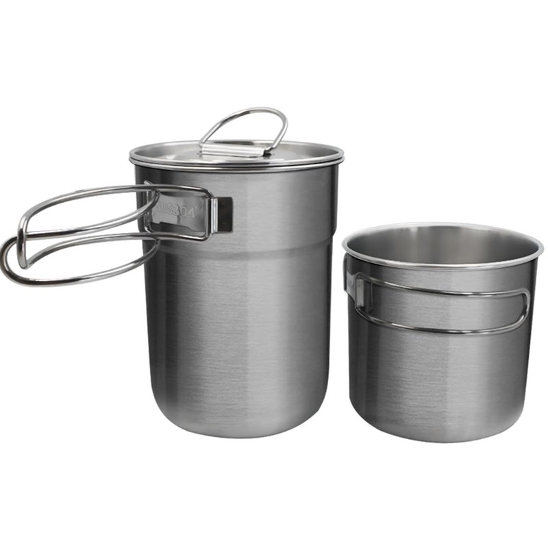 2-in-1cooking cup Set:including a 33oz big cup,24oz small cup,lid with 4-spiracle and a cloth bag,great for cooking food,tea or coffee,when camping, hiking, backpacking, outdoor adventure and survival. Healthy Food-grade Material:Cups Made of Food-grade 304 stainless steel,BPA-Free and Phthalate-free material,to ensure safety and hygiene,rust prevention and damage prevention.No toxin to ensure that the cups impart NO metal after-taste or unwanted flavors. User-friendly Folding handles:Keep stable when cooking on stove,to prevent scalding from hot water,tea,coffee.Saving space when handles fold for carry wherever you go. Lightweight and Durable:Weigh 418g only,Compared with other materials such as aluminum and titanium, the stainless steel material makes the cups more durable but lighter on your bag. Lid with 4-spiracle: With a lid to prevent heat loss,and let steam escape when boiling.Lid round edges is easy to clean.