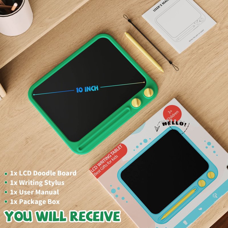 - 👏PORTABLE & DURABLE: KOKODI's toddler drawing tablet is made of durable upgraded ABS, anti-fall, and anti-shock. Easy to take with you in a scheduler, briefcase or backpack for travel without the mess of crayons, markers, or chalk. 10-inch writing tablet is suitable for little kids to hold, lightweight but sturdy. Great travel toys to keep kids focused anywhere, kids drawing tablet will keep kids occupied for hours in a car, airplane, so parent can enjoy a relieved trip