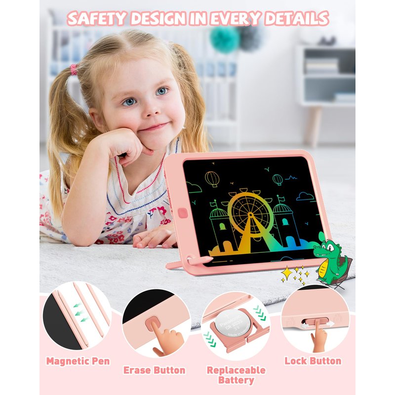 KOKODI LCD Writing Tablet for Kids, 10 Inch Colorful Drawing Tablet, Educational Learning Kids Toys for Age 3-12 Years Old, Toddler Doodle Board, School Supplies for Girls, Birthday Gifts 5-7