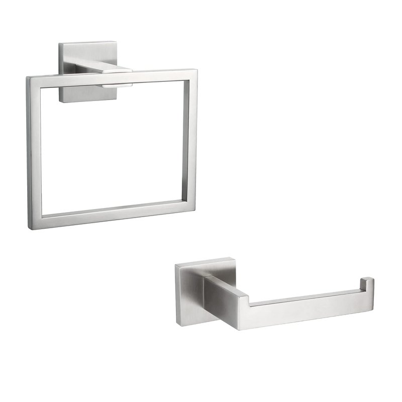 KOKOSIRI Bath Accessories Set 2-Piece Bathroom Hardware Set, Towel Ring, Toilet Paper Holder, Stainless Steel, Wall Mounted, Brushed Steel, B09S2-BR