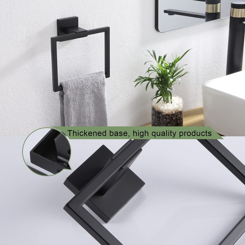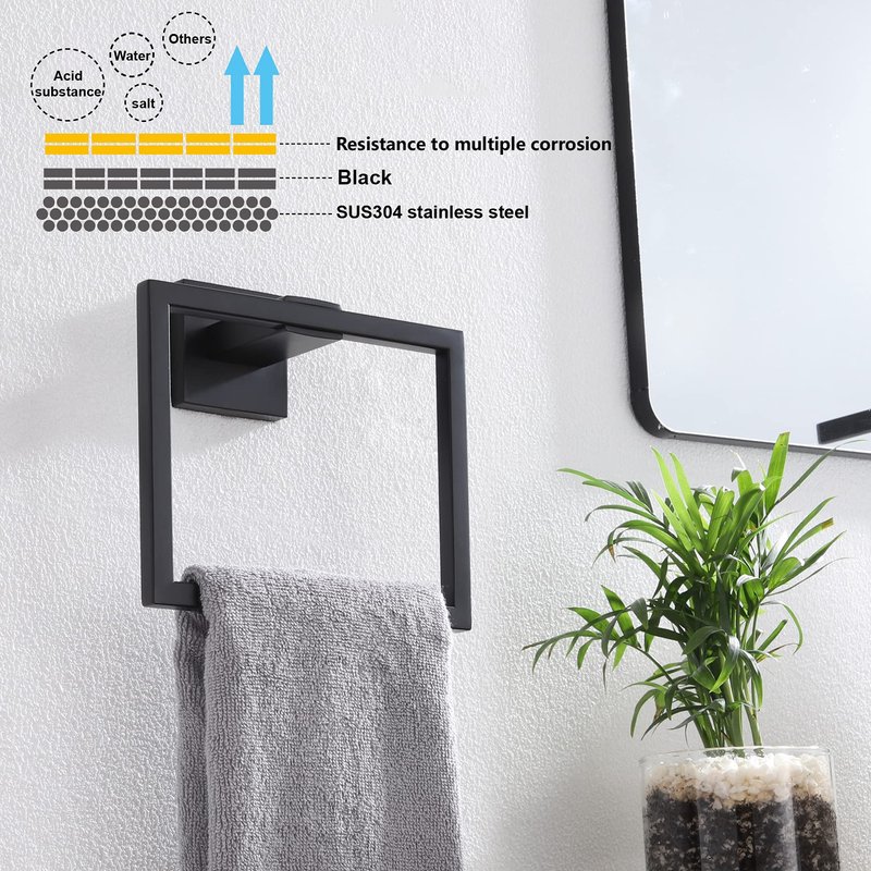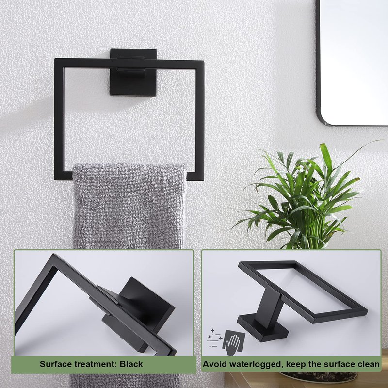 KOKOSIRI Hand Towel Ring Shower Towel Hanger Holder Bath Towel Holder Bathroom Lavatory Stainless Steel Wall Mount, Matte Black, B3004BK