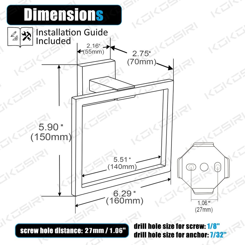 - ◄ Package Content ► Towel Ring x 1, Screw x 2, Anchor x 2, Bracket x 1, Allen key x1.