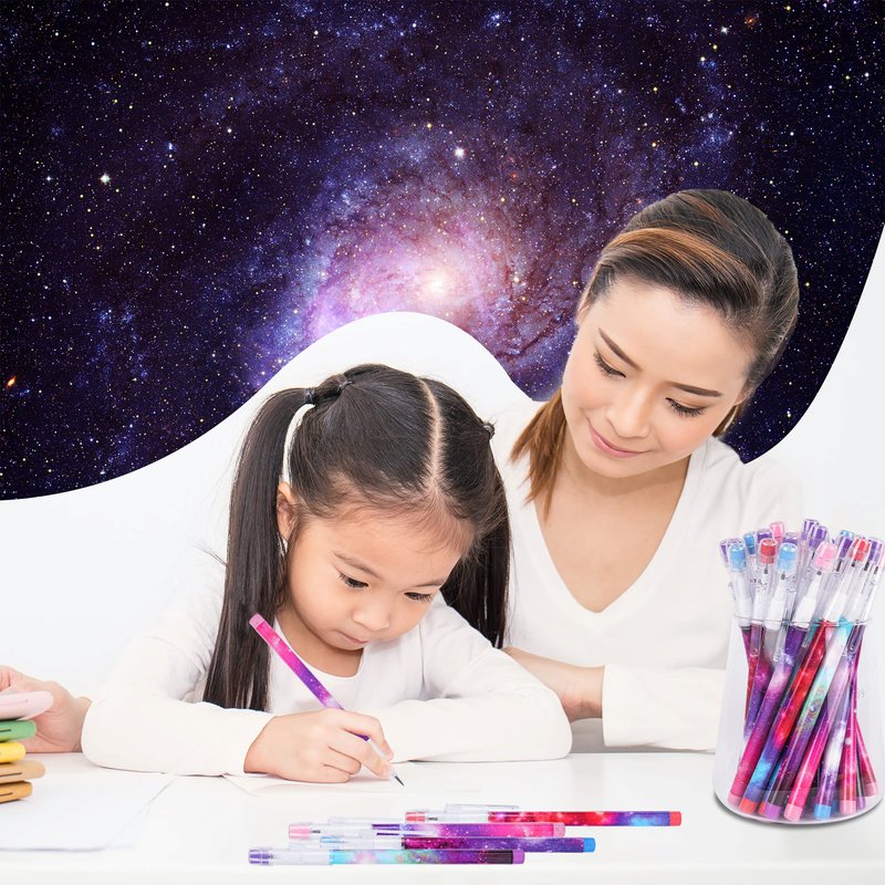 - Galaxy Themed Pencils: Set of 48 colorful galaxy themed pencils with starry sky and luminous stars designs for kids and adults.