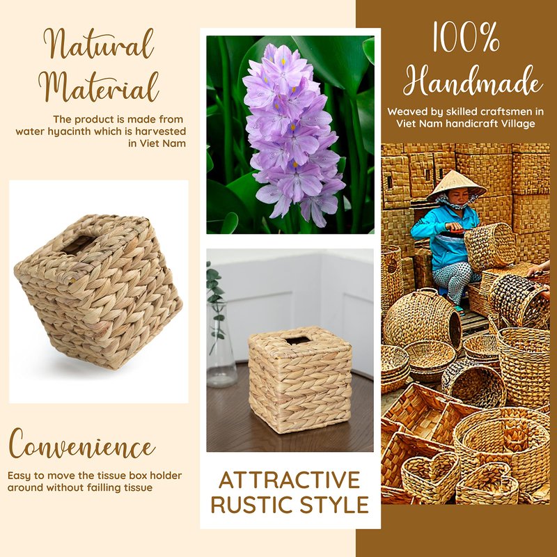 - 🌿DECORATIVE PAPER TOWEL COVER: The square wicker woven dispenser and holder will add a beautifully rustic charm to holding, showcasing paper towels, tissue, and napkins on your kitchen countertop or side table. It is great to display and store napkins with this premium box organizer or use it as an eye-catching dining table decor