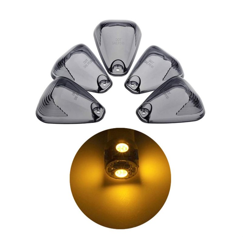 KOMAS 5pcs Smoked Cab Marker Roof Running Light,Smoke Cover Lens + 5x T10 6-3020-SMD Amber LED Bulb for 1999-2016 Ford F150 F250 F350 F450 F550 E150 E250 E350 E450 E550