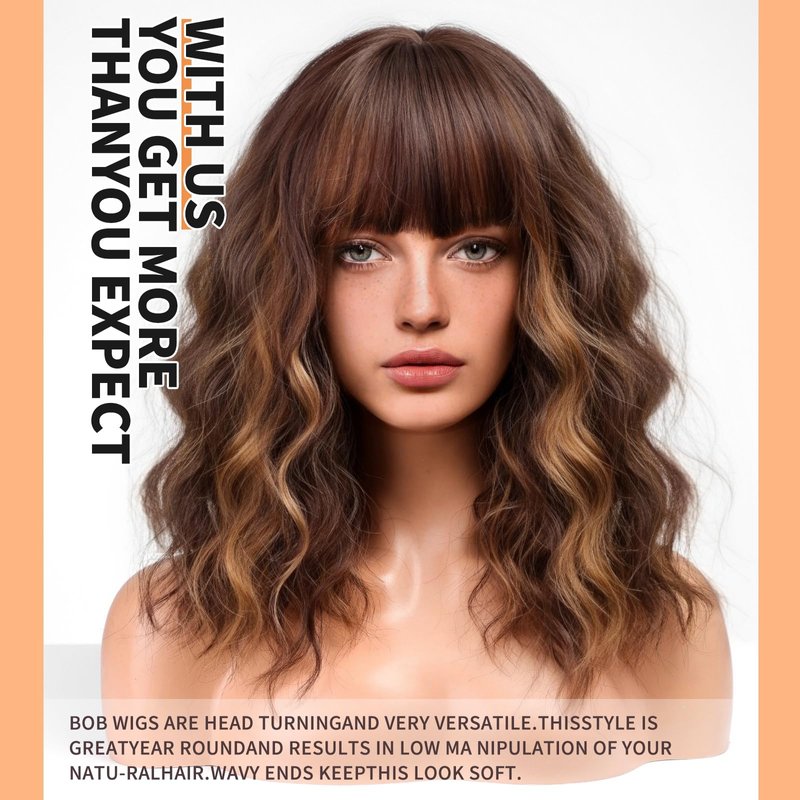 - 💞Hairstyle: Short wavy bob wig with bangs,the thickness and length of the bangs are moderate,making the wig look more Realistic and Cute.You can freely trim and shape the bangs to your favorite style.Shoulder Length is Perfect.