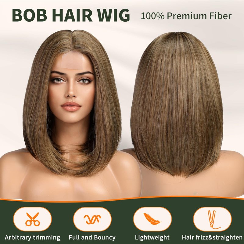 - Premium Material: Short bob wig synthetic,short wig 100% high quality heat resistant fiber short wig, the hand woven lace area on the front of the wig makes the hairline more natural and realistic.