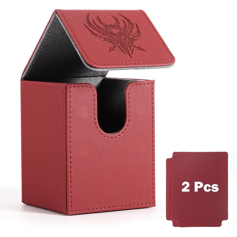 Komick Premium PU Leather Card Deck Box for MTG, Yugioh, Holds 100+ Deck Case with 2 Dividers for Collectible Trading Cards TCG, CCG (Red Griffin)