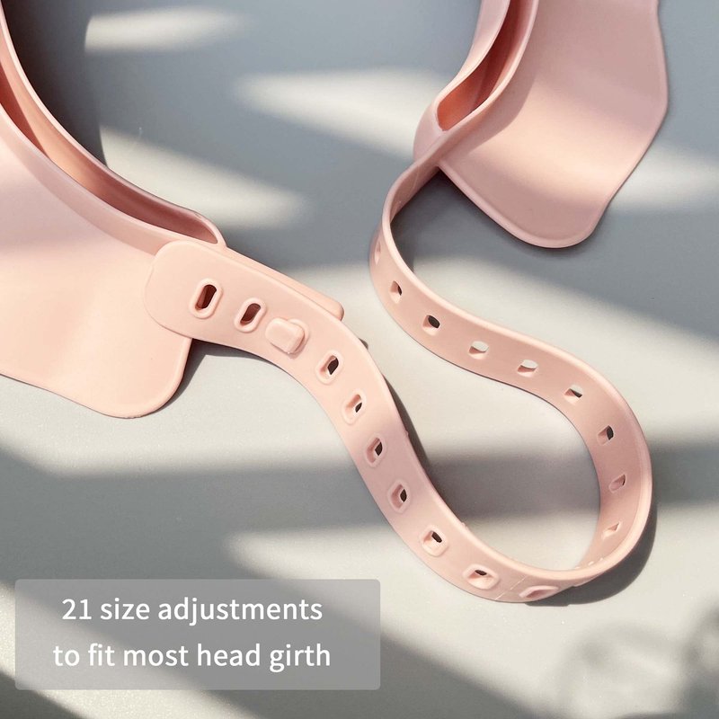 - Baby shower cap is perfect for head sizes ranging from 15.8-22.8 inches. Our cap is gentle on your baby's sensitive skin and features an adjustable silicone safety buckle that won't harm your baby's hair. Simply adjust according to the size of your baby's head, and our cap will fit snugly and prevent any water leakage. Our baby shower cap for washing hair is a must-have for any parent!