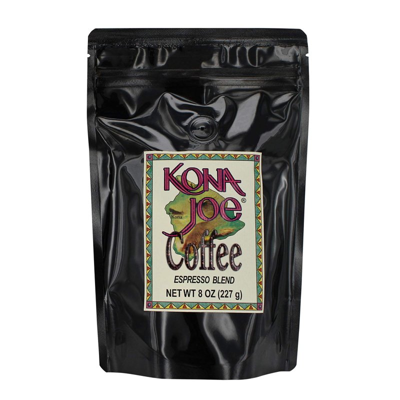 The Kona Joe gourmet espresso coffee blend is perfect for an espresso shot, cappuccino or latte. Darkest of all our roasts, the espresso coffee beans are roasted for a total of 22 minutes to bring out a toasty and robust flavor. The naturally sweet Hawaiian coffee has hints of brown sugar and black licorice.