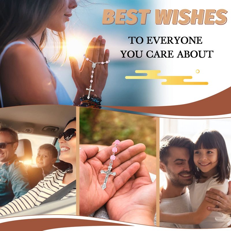 Konohan 2 Pieces Car Rosary Rearview Mirror Auto Rosary Religious Car Mirror Hanging Accessories for Car Personalized Protection Charm for Auto Decors (Rose)