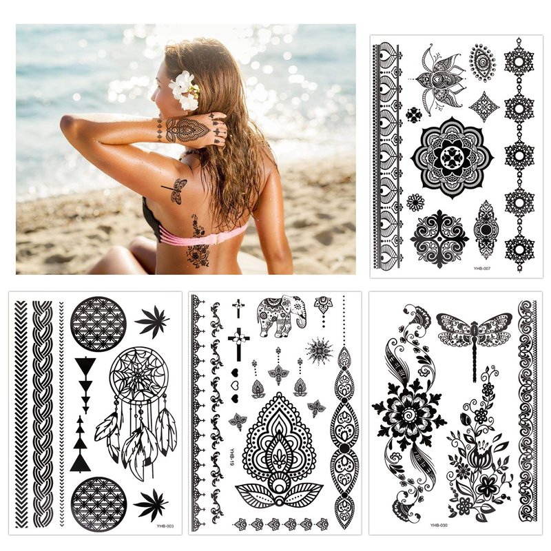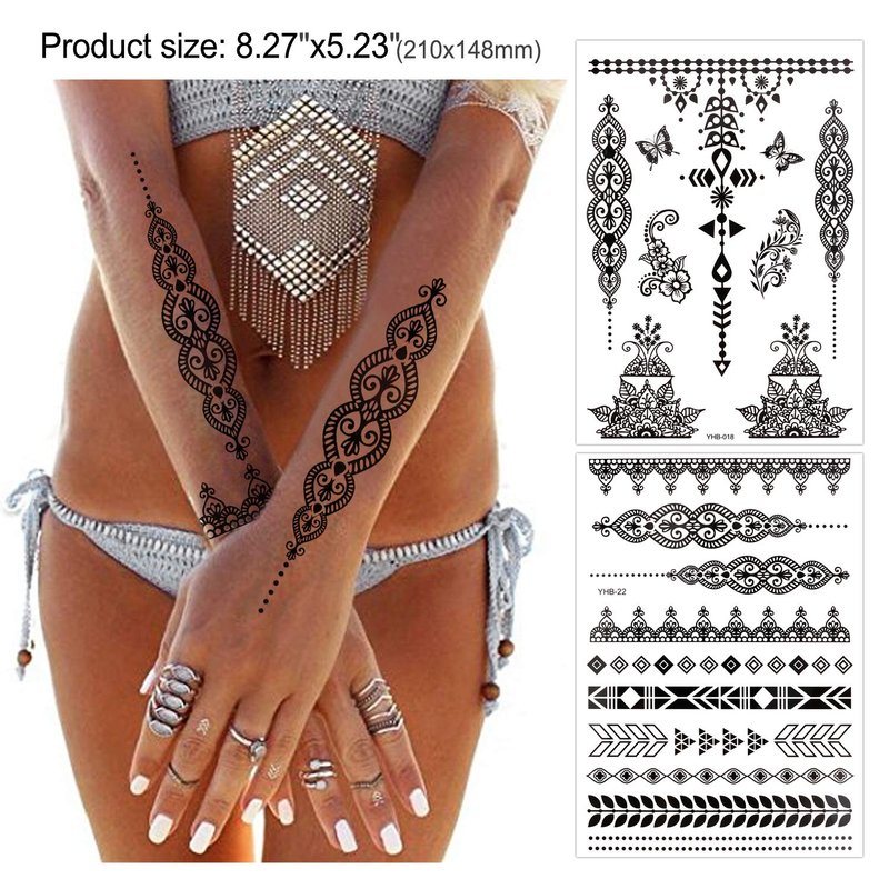 - 100% Safe to Use - These Black Temporary Tattoos is non-toxic, these stylish fake jewelry tattoos are fun for all ages. Suitable for parties, Halloween, Masquerade, Balls, Photo shoots Clubbing, Pool, Concerts, Festivals, hen party, The Beach, Or for fun everyday use!