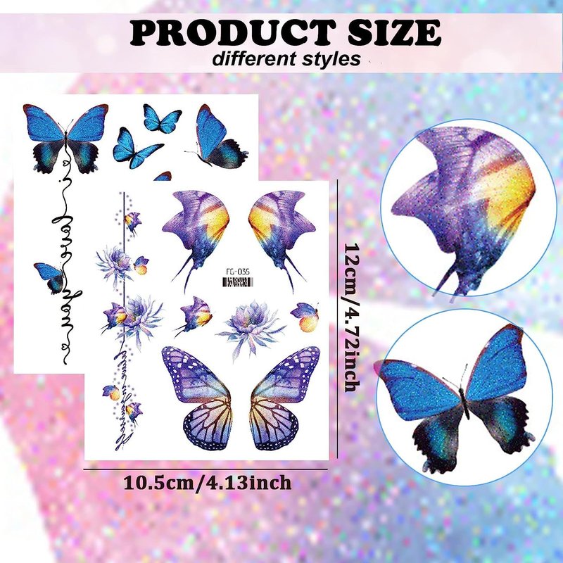 - Popular Party Accessories: Glitter Butterfly Temporary Tattoo is the perfect party decoration gift, suitable for women's eyes makeup, flower fairy party, butterfly theme party, princess party, stage show, school carnival party, family party, class reward, and many other fun events
