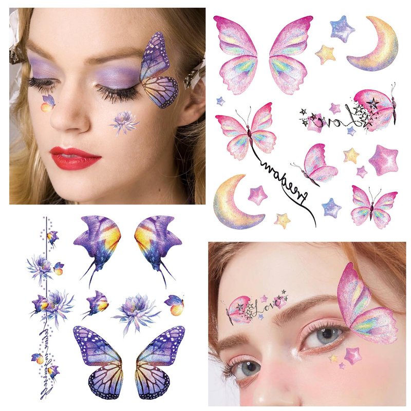 - Premium Quality: Our butterfly Fairy make-up temporary tattoo Stickers are made of safe and high-quality paper.After multiple rigorous safety tests, women's delicate skin can also be used with confidence