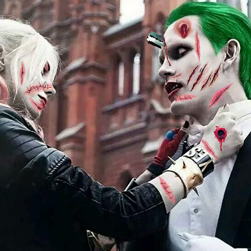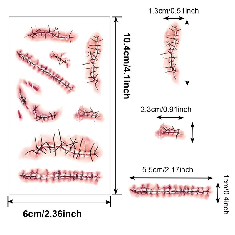 - Halloween Cosplay Party: Halloween scar wound temporary tattoos very real and natural, matching your Halloween party Cosplay & Halloween zombie makeup. Great trick to astonish and scare your friends. keep you unique in Halloween zombie costume makeup.