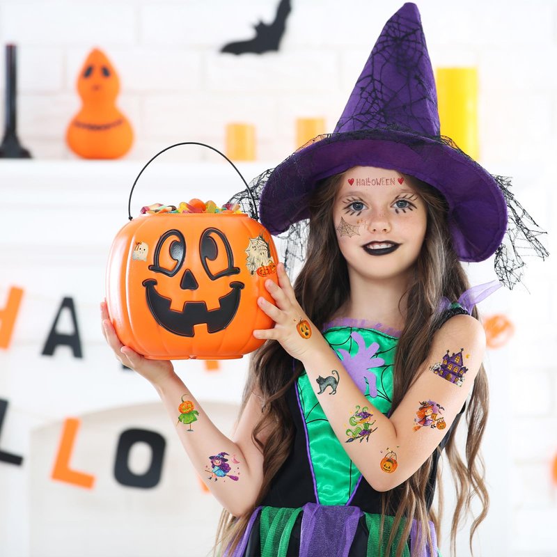 Not only are these fake tattoos more fun than candy, they are also perfect for Halloween party favors or gift exchanges. Each glitter tattoo stickers includes a variety of classic Halloween elements such as pumpkins, ghosts, witches, bats, and more, which will satisfy a variety of kids' preferences and needs.