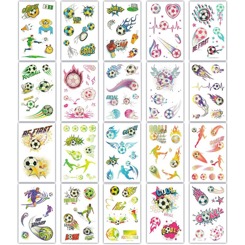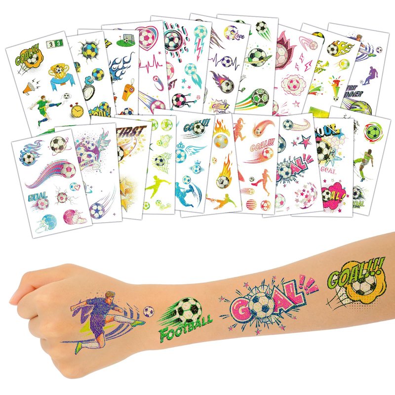 - 【 Safe and friendly material 】 We use environmentally friendly and non-toxic material to make the sports tattoos for kids, suitable for children over 3 years old, so you can rest assured. The water-resistant design ensures that kids will enjoy showing off their tattoos during play, long-lasting and durable. Everyone can have glitter soccer ball tattoo stickers.