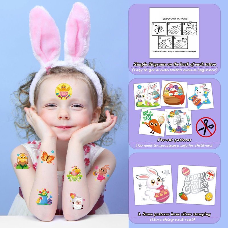 - 【 Wide Range of Entertainment 】 Whether it's an Easter party, a spring gathering or an egg hunt, these Easter temporary tattoos will be a great way to spice things up. They can not only be applied to any part of the skin, but also to other smooth surfaces to help create a strong holiday atmosphere.