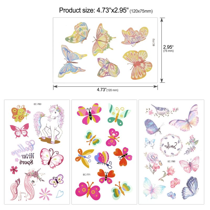 - 【BUY WITH CONFIDENCE】Our fake butterfly tattoos for kids girls are backed by a MONEY-BACK & SATISFIED GUARANTEE, your satisfaction is our priority. Get it for fun!