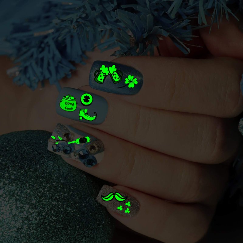 - 【Buy With Confidence】 Any problem just email us, our customer always stand by for your 100% satisfied shopping experience about Luminous St. Patrick’s Day nail stickers decals. Worthy bundle for you share with your friends and family. More party favors nail stickers please visit Konsait storefront! Let's decorate our nails by yourselves!