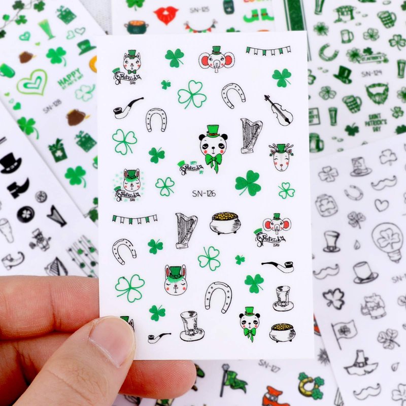 - 【 St. Patrick’s Day Nail Decals】You will receive 9 Sheets luminous St. Patrick’s Day nail stickers. More than 400 kinds of 3D self-adhesive nail stickers,with St.Patrick's Day typical elements, including shamrock, beer, pots of gold, Leprechaun, Irish flag, Leprechaun hat, Luck, etc.