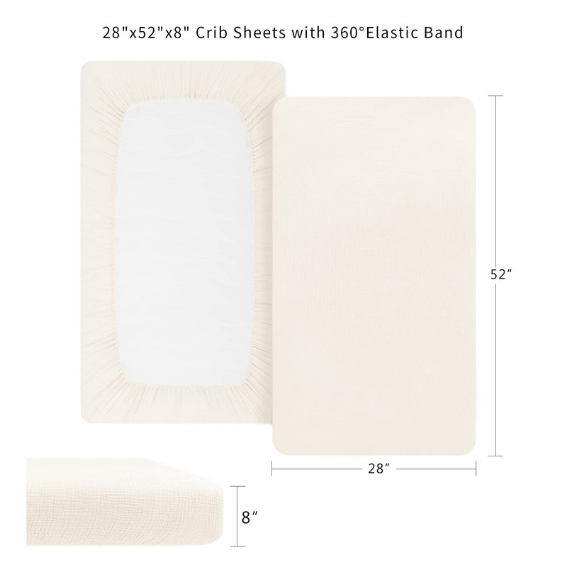 Konssy Muslin Fitted Crib Sheets 100% Cotton Baby Crib Sheets for Standard Crib Mattress (28 X 52 Inches), Soft and Breathable for Boys, Girls (Cream)