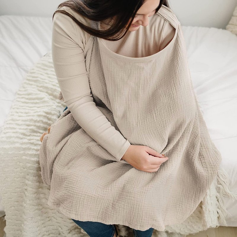 Muslin nursing cover for breastfeeding is a piece of fabric or garment designed to provide privacy and comfort while nursing a baby in public or in front of others.