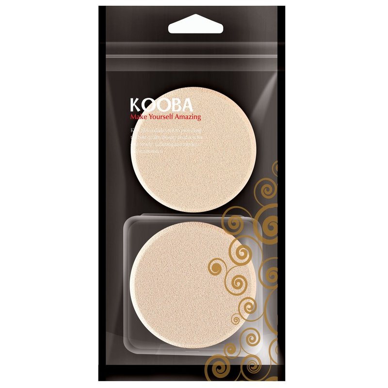 KOOBA 2pcs Round Makeup Sponges with 1 Travel Case, Beauty Face Primer Compact Powder Puff, Blender Sponge Replacement for Cosmetic Flawless Foundation, Sensitive and All Skin Types