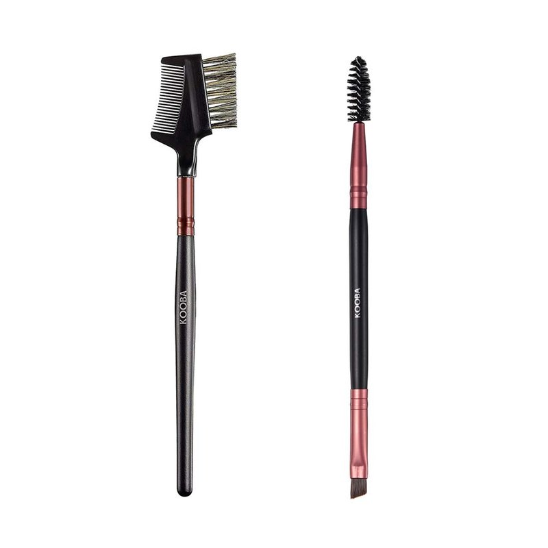 KOOBA Set Eyelash Comb and Duo Eyebrow Brush 2Pcs, Portable Makeup Eye Powder Foundation Brush, Beauty Cosmetic Tool for Professional and Travel