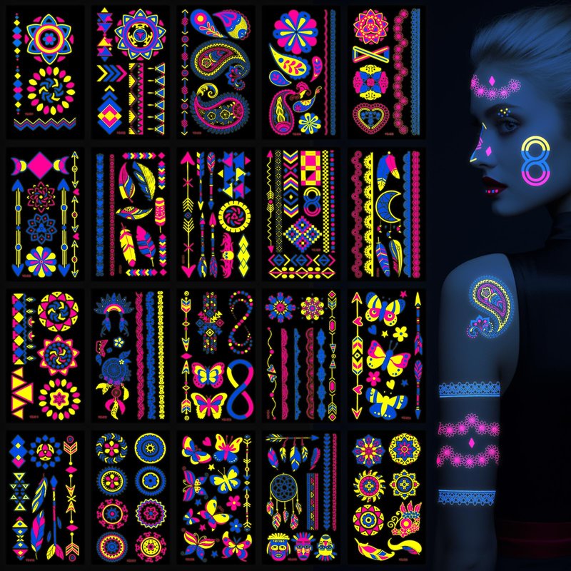 - Various Occasions - These neon temporary tattoos are great for Halloween make up, punk party, carnival, dancing, swimming the beach, festivals, vacations, concerts, pool, beach, dinner dress, music festival, night out or anywhere with UV Lighting.
