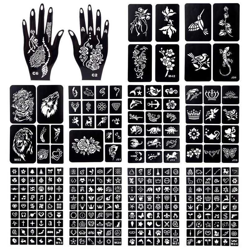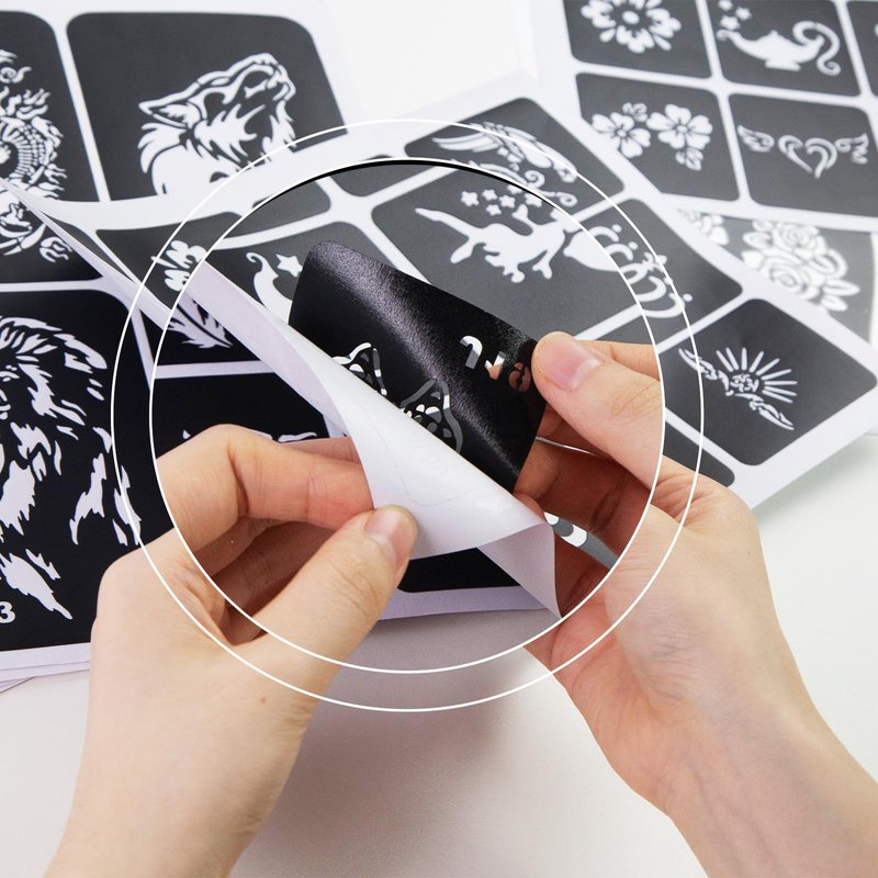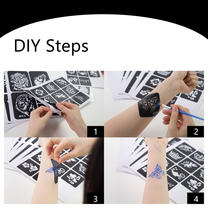 - User-Friendly Experience - Our tattoo stencils are designed for ease of use. Simply select a pattern you like and apply it to your skin. Then, use a henna tattoo cone (not included in the package) to apply paint within the stencil's outlines. Allow the paint to dry completely, then peel off the stencil.