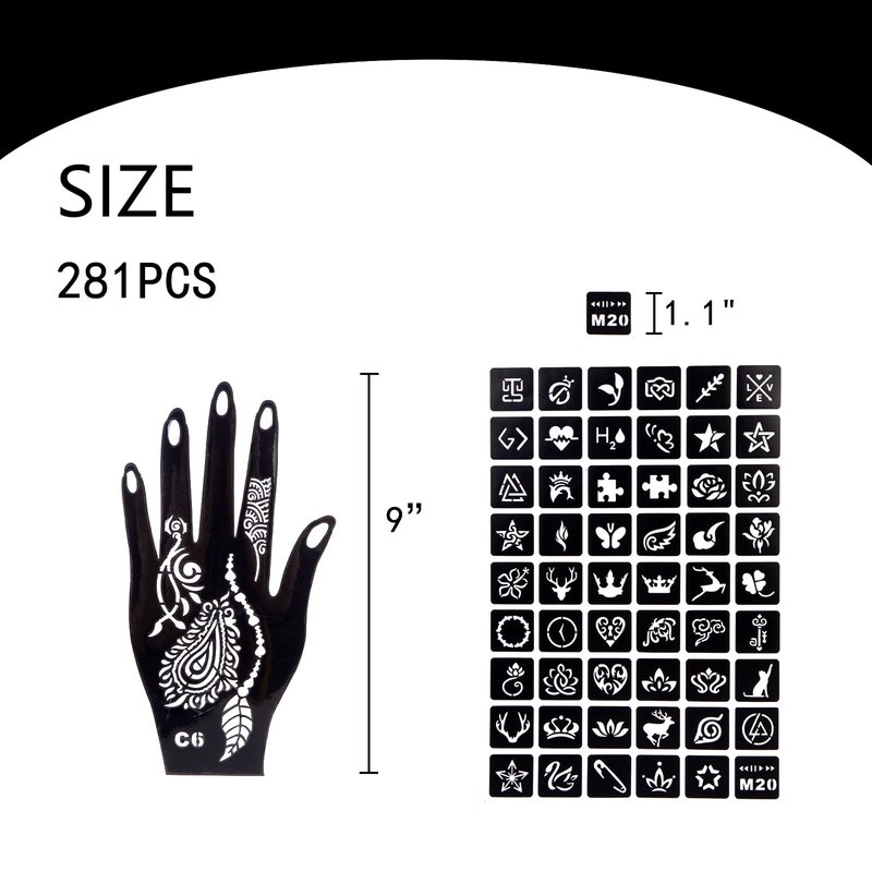 - Exceptional Value - Our super value pack contains a wide variety of patterns, offering over 281 different designs for your selection. You can apply these tattoos to any part of your body according to the stencil's size. These tattoo stencils are reusable as long as you store them properly after use.