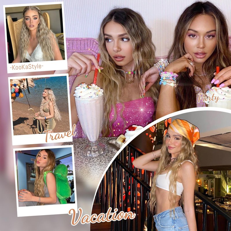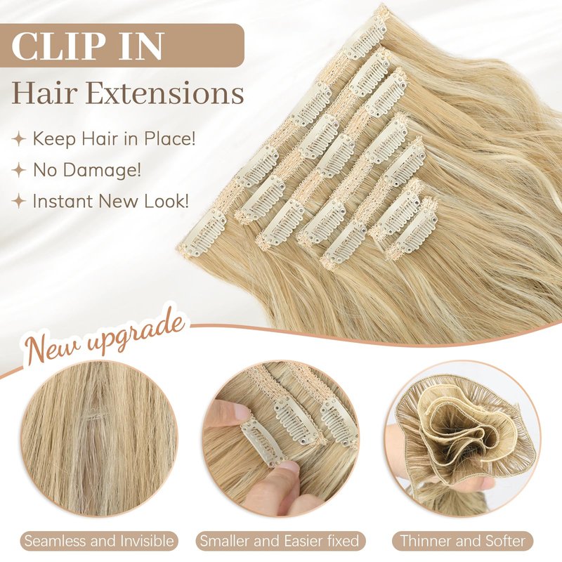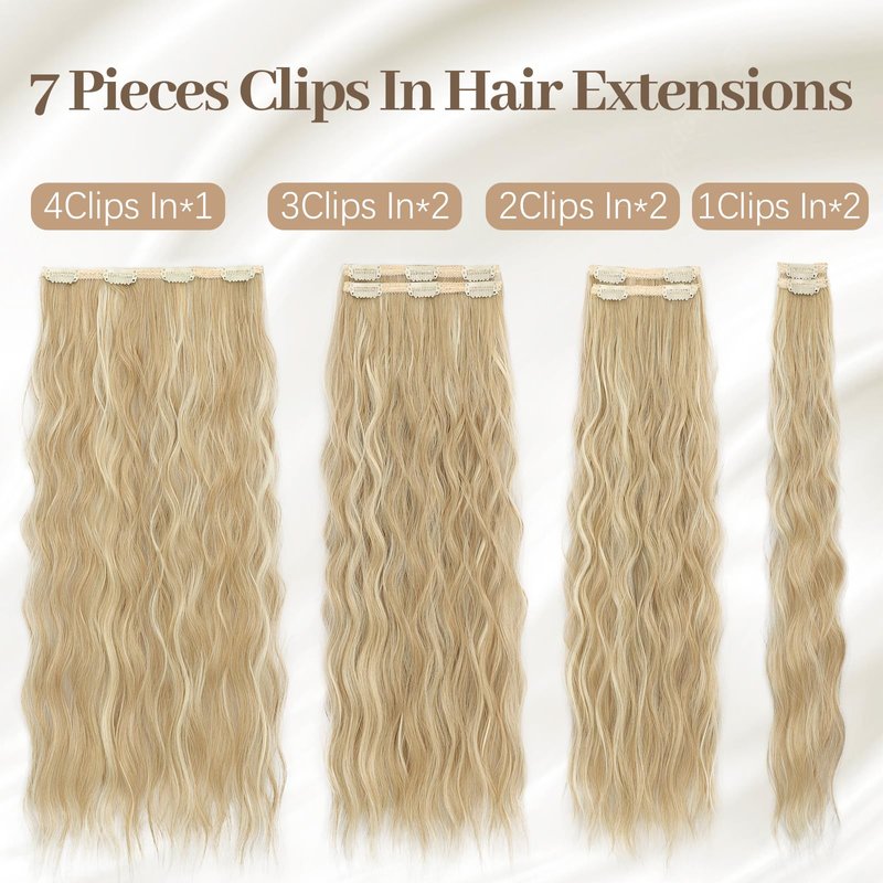 KooKaStyle Hair Extensions, 7PCS Clip in Long Mermaid Wavy Hair Extensions Thick Natural Hairpieces Double Weft for Women Full Head (20 Inch, Beach Blonde)