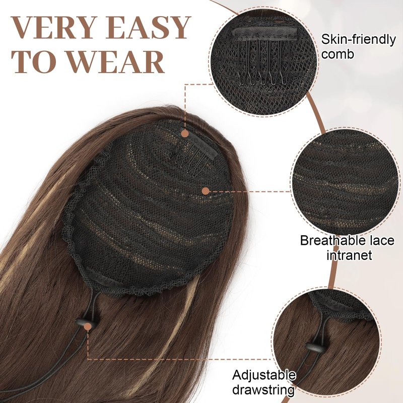 - [Stays in Place] Drawstring ponytail protects you from awkward situations. It features four invisible combs and a high-elastic drawstring construction to keep the ponytail extension in place all day long.