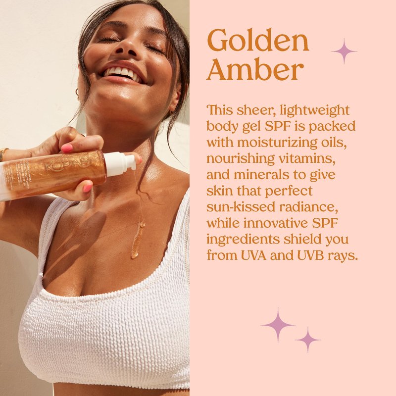 A lightweight, gel broad spectrum SPF 30 sunscreen that's packed with moisturizing oils, nourishing vitamins, and ethically-sourced golden amber pearlescent minerals to give skin that perfect sun-kissed radiance, while innovative SPF ingredients shield you from UVA and UVB rays.