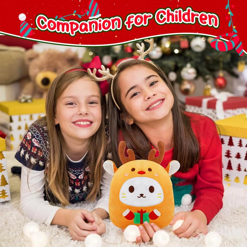 - SOFT AND HUGABLE: Our cat deer plush pillow Christmas stuffed animals is undoubtedly super soft and cuddly! Soft squeezable first class feel that you will love. Cuddle this Christmas plush reindeer stuffed animal to sleep to accompany you to sweet dreams.It can also be used as decoration in living room, room, car, office.