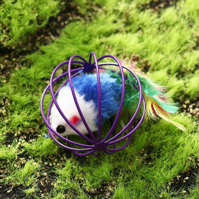 - The artificial mouse is in the cage, which increases the fun. Bring these ball toys home to your cat quickly. Suitable for small and medium-sized cats.