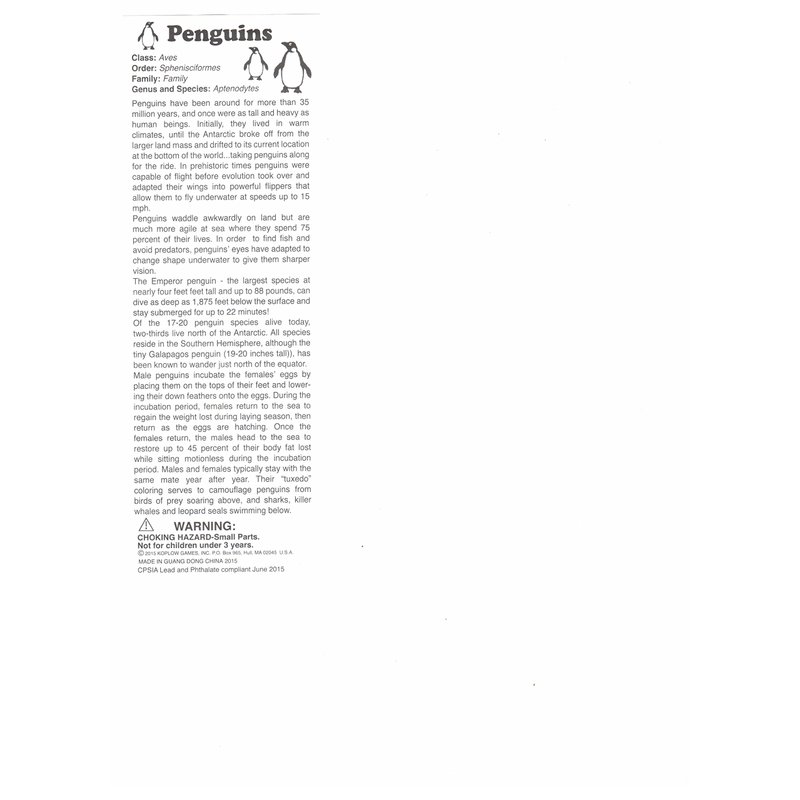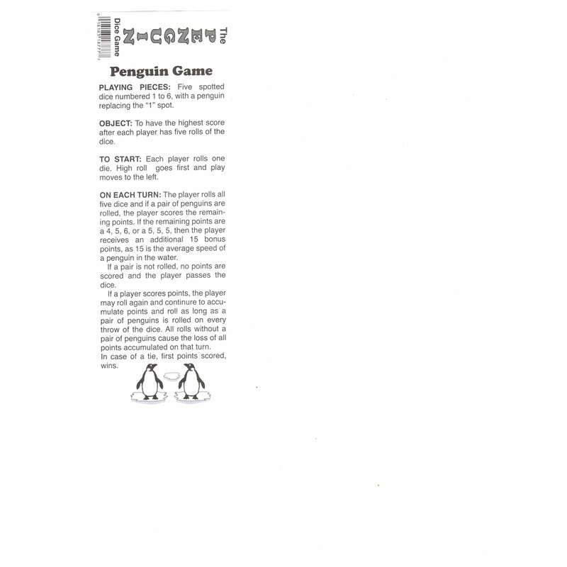 Enjoy playing Penguin at home or on the go! All contents of the game are included inside a conveniently sized plastic tube. See gallery images for a copy of game play and rules.