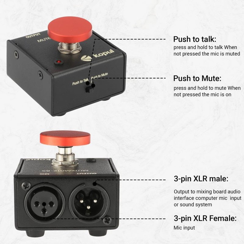 - PUSH-TO-TALK & PUSH-TO-MUTE FUNCTIONALITY: The Kopul Mute/Talk Button allows you to easily switch between mute and talk modes with just a press of the red button. Perfect for seamless communication during online meetings, podcasts, live streaming, and broadcasts. This intuitive control helps prevent interruptions and ensures clear, hands-free audio management during your sessions.