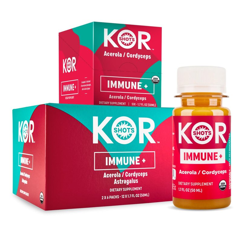 Kor Shot Acerola Ginger and Cordyceps Shot - 18 Pack x 1.7 Fl Oz - Immune Plus - Immune System Booster - 533% DV of Vitamin C - USDA Certified Organic - Dietary Supplement