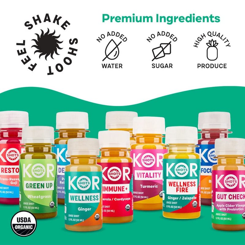 Kor Shots is a Malibu based juice company that handcrafts the original raw shot. Quality of Sourcing: We only use the freshest produce to ensure that every shot will supply your body with the healthiest properties nature has to offer. We work hand in hand with our farmers located in Malibu and Hawaii. Healthy: Just SHAKE, SHOOT, and FEEL your body’s immediate increase in energy, balance and clarity, while boosting your immunity and body’s overall health and wellness. Convenient: You no longer have to deal with a messy juicer to enjoy your daily dose of the most nutritional and restorative ingredients on earth! COLD-PRESSED AND 100% ORGANIC.