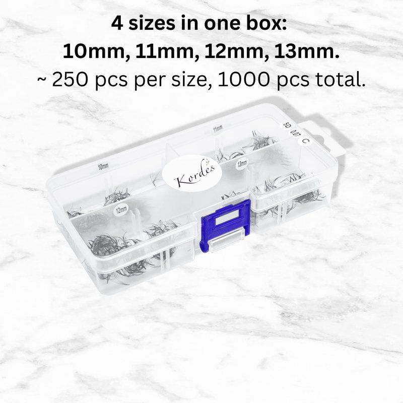 Kordes Lash Clusters – 1000pcs Lash Extension Kit – 5D Volume C Curl Lash Clusters – Handmade and Premade Fans Eyelash Extensions – Natural Mink Eyelash Extensions (10 to 13mm 5D C Curl)