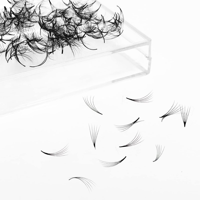 Our amazing premade fans lash extensions are a quick and easy solution for natural or glamour makeup that needs a little zhuzh. The set includes a mix of volume lash extensions that ensure a more natural effect. These soft, lightweight fans boast a pointy base, different lengths, and a 0.7mm thickness. The tray includes no less than 1,000 eyelash extensions with an ultra-thin stem that will not look or feel heavy on the eyelid.