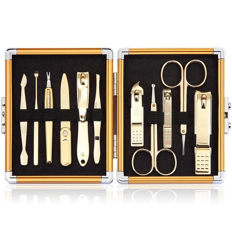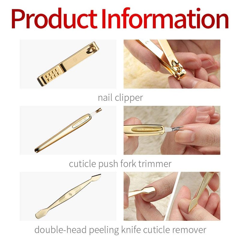 - Included (Total 11 Pcs: Nail Clipper, Toe Nail Clipper, Cuticle Trimmer, Small Nail Clipper, Beauty Scissors, Tweezers, File, Safety Scissors, Double-sided Push Stick, V-Shaped Push Stick, Ear Pick: TS-16000SVG-AM).