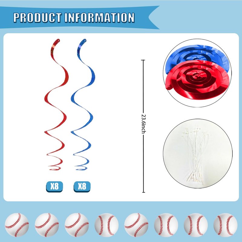- 【Package Included】:Baseball birthday decorations includes 1pcs happy birthda golf banner and 16pcs baseball card swirls with 16pcs hanging swirls. With this comprehensive set, you can beautifully decorate your birthday with baseball themed.