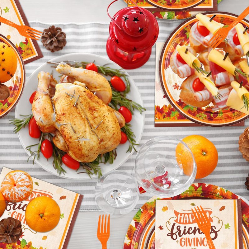 - 【Classic Design】:The fall maple leaves printing adds a delightful touch of harvest charm to the festivities. Friendsgiving party supplies with traditional and timeless classic design will undoubtedly enhance your party style.