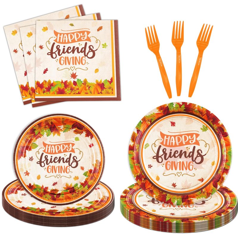 - 【Happy Friendsgiving Supplies】:The package includes 24Pcs fall paper napkins,24Pcs-9inch plates,24Pcs-7inch plates,24Pcs forks.Enough for your friendsgiving party needs,and the overall design is perfect for pairing with fall parties.