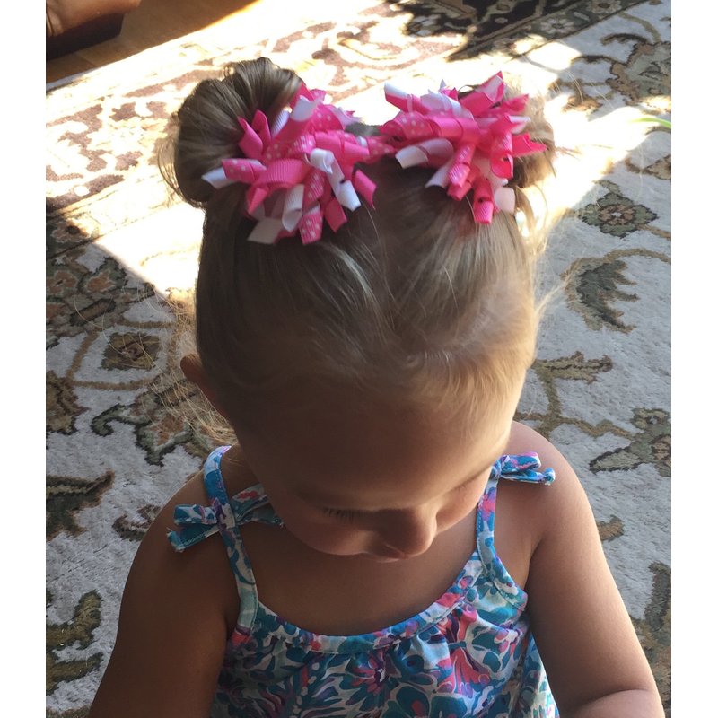 Set of 2.5 inch wide korker style hair bows. The hair bows are crafted using 1 3/4 inch single pronged alligator pinch . The clip is lined with a no-slip strip for a tight hold. Available in many colors.